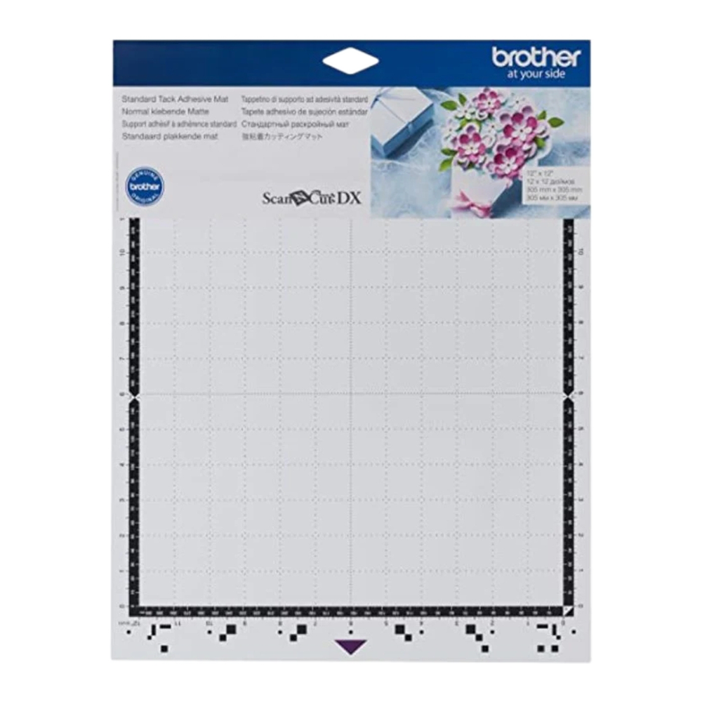 A must-have accessory for your cutting machine, the Brother CADXMATSTD12 Standard Tack Adhesive Mat features tacky adhesive to secure pieces for cutting and can be used multiple times. Specially designed to hold a wide range of materials from cardstock to fabrics with backing, it accommodates sheets up to 12" x 12" (305mm x 305mm). Durable and long-lasting, use it with your ScanNCut DX machine for all your cutting projects.
