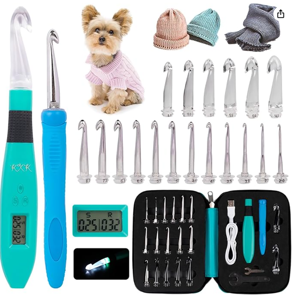 - Rechargeable - Crochet needle set has a built-in lithium battery which can be recharged and reused. Battery is fully charged after 15 minutes and it lasts 10-12 hours.