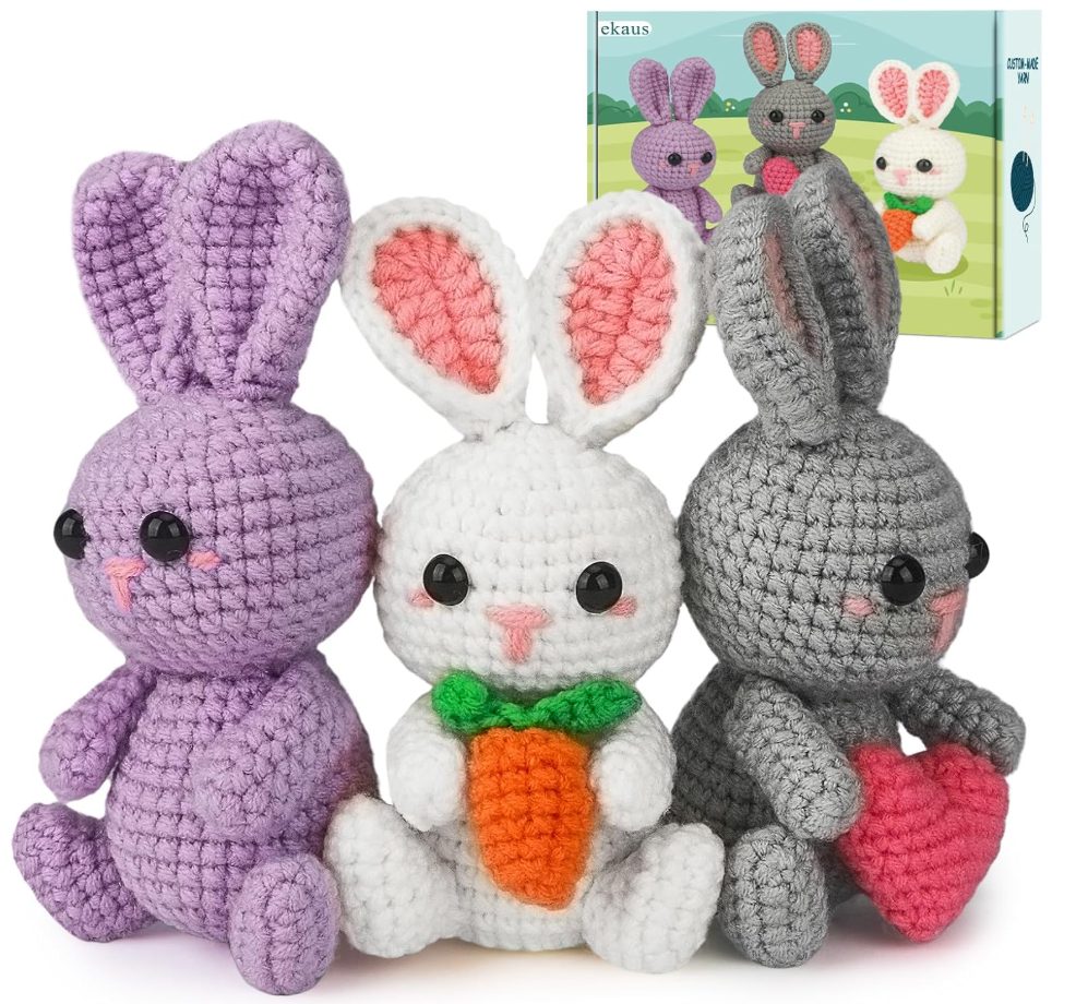 - 【Beginner Crochet Kit 】Our beginner crochet kit equipped with everything you need to start: 11 different colored yarns, ample stuffing, a needle, 6 safety eyes, 5 stitch markers, 1 crochet hooks, a pair of scissors, a crochet rabbits pattern, and a beginner's basic crochet manual. Kids 13+ and adults can get a grip on the basic crochet techniques while creating the sweetest toys.
