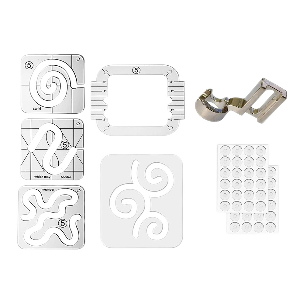 - These set comes with 5 pieces quilting template rulers (3mm thick, not easy break) ,a low shank ruler foot with 48 pcs non-slip grips for quilt templates. They are designed for quilting meander and stipple patterns on quilts or other textiles, different styles provide multiple choices for these quilting projects.