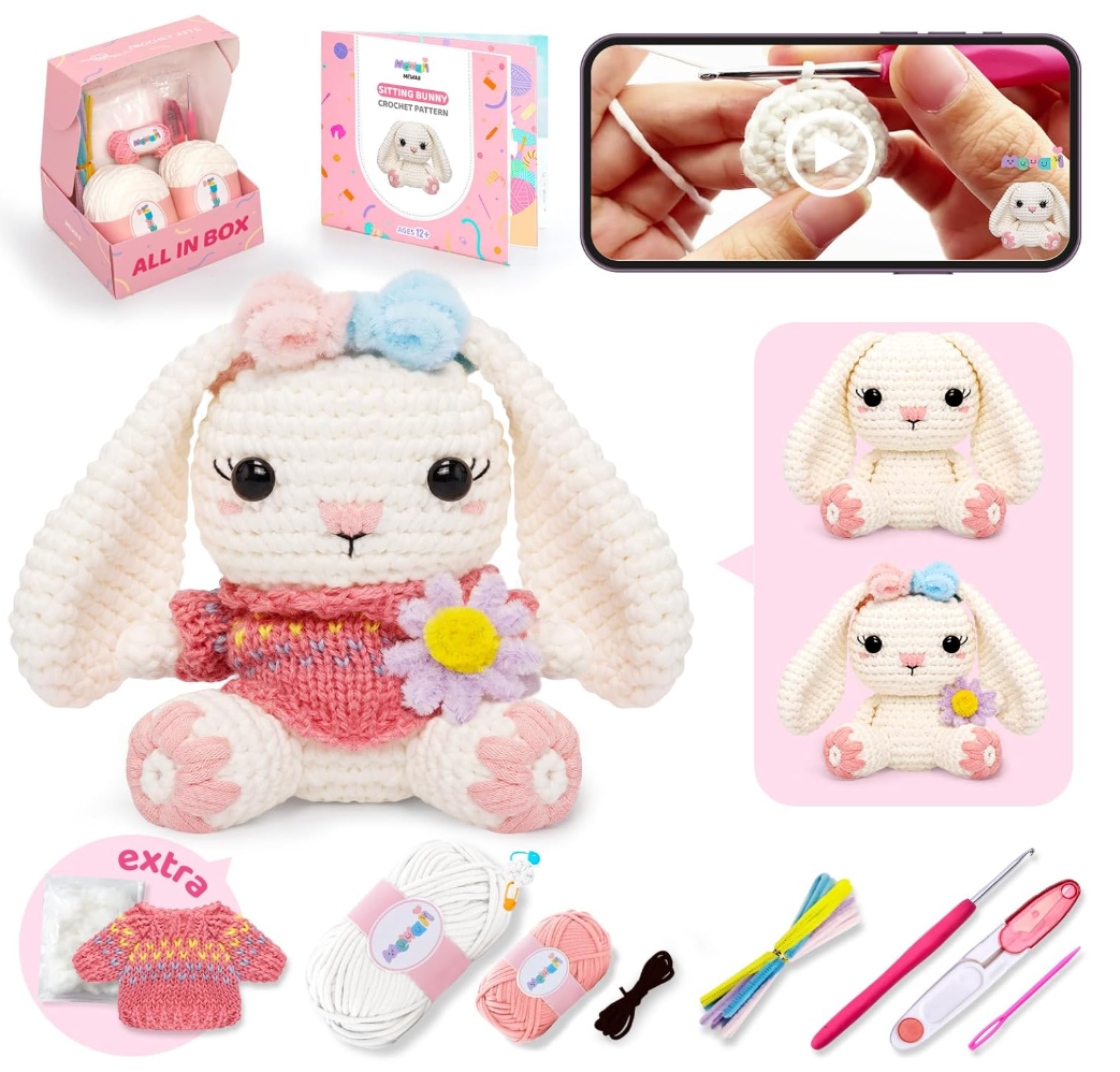 - Step-by-Step Video Tutorials: New to crochet? Don't worry. The Mewaii crochet kit includes color-printed tutorials and easy-to-follow videos to help beginners start quickly. Each step is clearly explained, so you can easily follow along and restart from any point