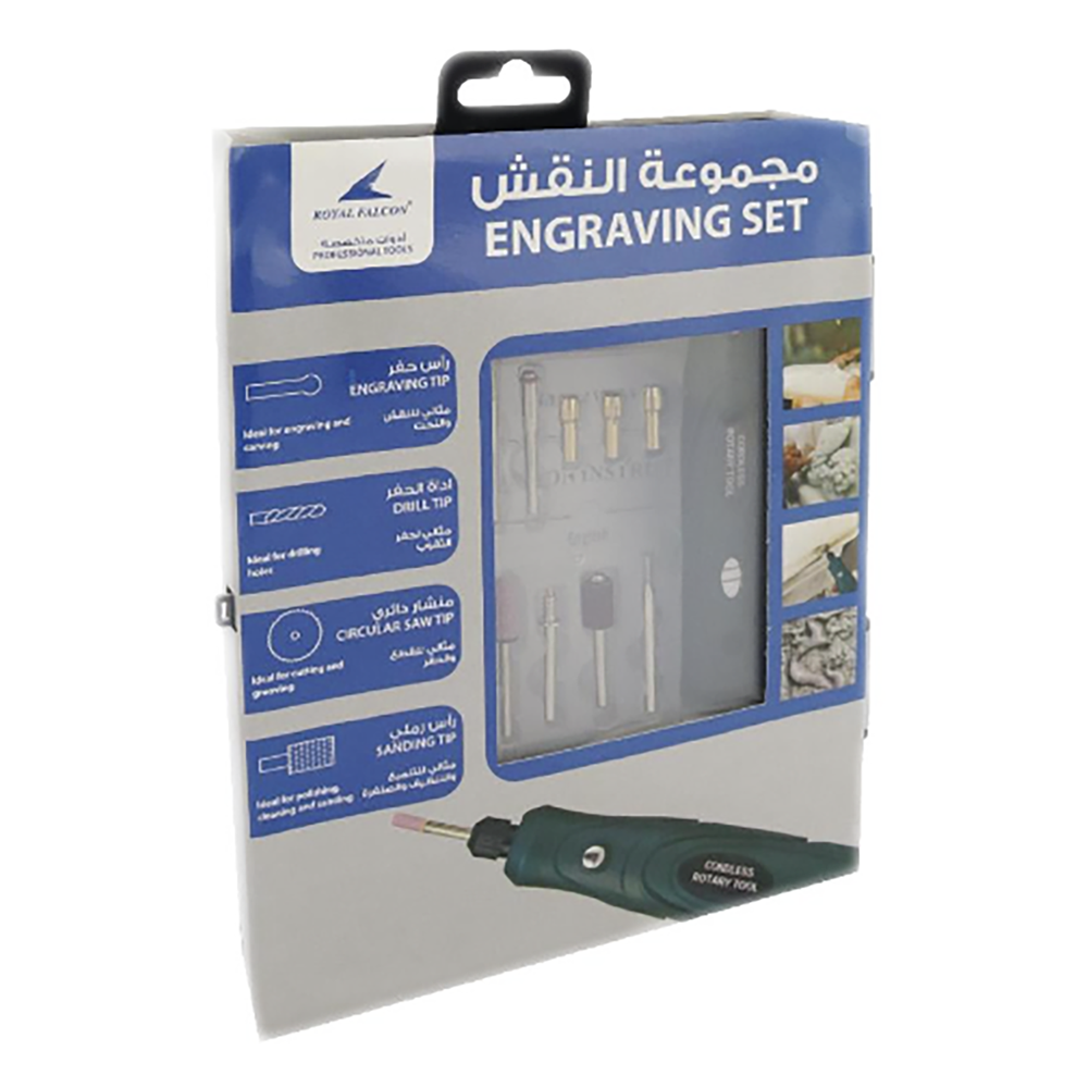 The Royal Falcon Engraving Pen & Tip Engraver Tool is a precision instrument designed for engraving and etching on a variety of surfaces. Featuring a lightweight and ergonomic design, this tool provides users with precise control and maneuverability for intricate detailing and fine lines. It comes with interchangeable tips of varying sizes and shapes, allowing for versatility in engraving techniques and styles. Whether working on metal, wood, glass, or plastic, the Royal Falcon Engraving Pen & Tip Engraver Tool offers reliable performance and consistent results. Ideal for artists, craftsmen, and hobbyists alike, this tool is a valuable addition to any workshop or creative workspace, enabling users to add personalized touches and decorative embellishments to their projects with ease.